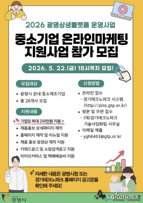 시는 관내 중소기업의 온라인 시장 진출과 판로 확대를 지원하는 ‘2026년 광명시 중소기업 맞춤형 온라인 마케팅 지원사업’ 참여기업을 오는 5월 22일까지 모집한다.