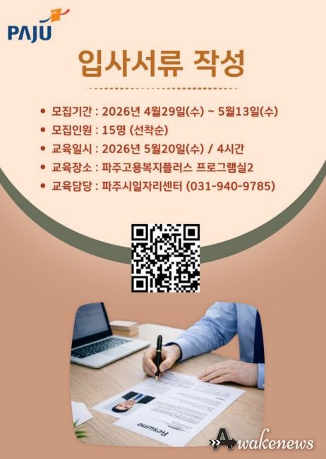어웨이크뉴스 오경하 기자 | 파주시는 중장년 구직자의 원활한 노동시장 재진입을 돕기 위해 ‘입사서류 작성 실습 교육’참여자 15명을 모집한다.