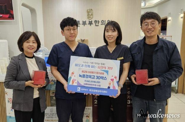 어웨이크뉴스 오경하 기자 | 수원시 팔달구 매교동는 지난 27일, 바른부부한의원 수원으로부터 5,550천원 상당 녹용경옥고(30개입) 30박스를 기부받았다고 밝혔다.