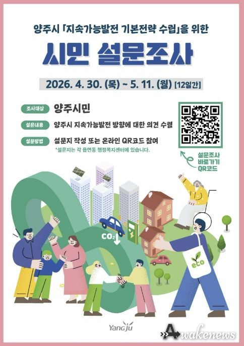 어웨이크뉴스 오경하 기자 | 양주시는 ‘지속가능발전 기본전략 및 추진계획’ 수립을 위해 시민 의견을 수렴하는 설문조사를 실시한다.