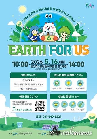 어웨이크뉴스 오경하 기자 | 파주시청소년재단 교하청소년문화의집에서는 청소년의 건강한 성장과 성년의 의미를 되새기기 위해 2026년 5월 16일 '청소년의 달 및 성년의 날 기념행사 ‘EARTH FOR US’'를 개최한다.