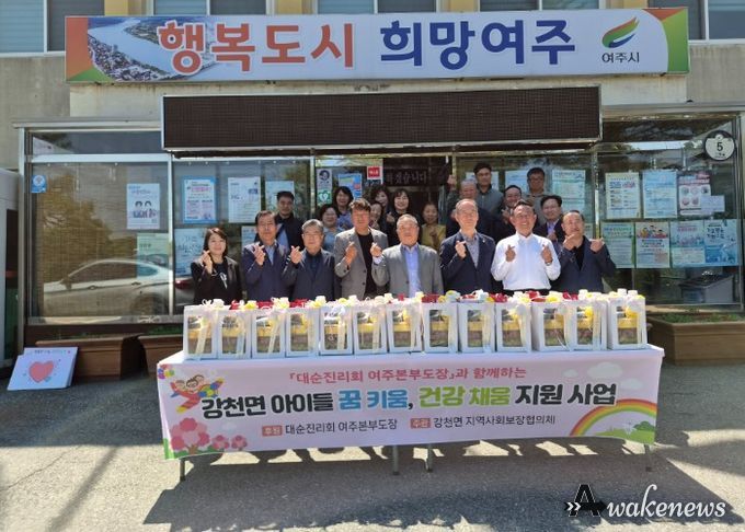 어웨이크뉴스 오경하 기자 | 강천면 지역사회보장협의체는 다가오는 제104회 어린이날을 맞아 지난 2026년 4월 30일 대순진리회 여주본부도장과 함께 ‘강천면 아이들 꿈 키움, 건강 채움’ 전달식을 가졌다.