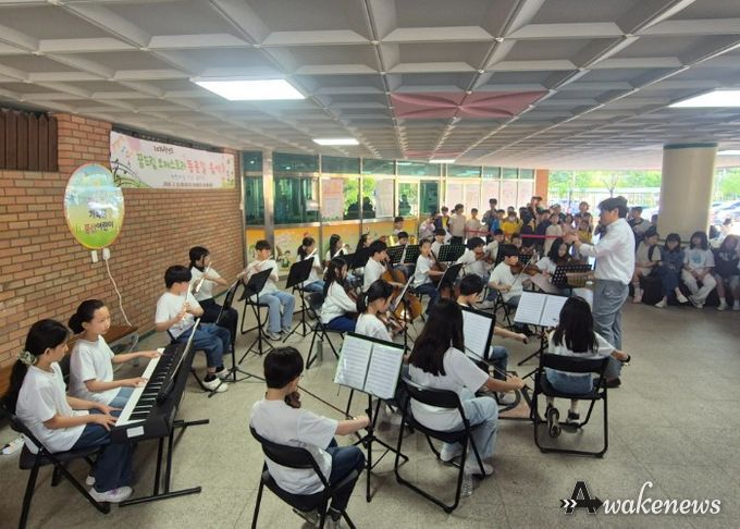 어웨이크뉴스 오경하 기자 | 하남풍산초등학교는 4월 30일 오전 등교 시간에 맞춰 학교 1층 중앙로비에서 ‘꿈드림 오케스트라 등굣길 음악회’를 운영했다.