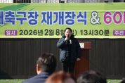어웨이크뉴스 오경하 기자 | 남양주시는 지난 8일 진접읍 부평리 소재 크낙새축구장에서 재개장식을 개최하고, 지역 생활체육 활성화의 새로운 출발을 알렸다고 9일 밝혔다. 이번 재개장식은 노후화된 축구장 시설을 정비해 시민에게 보다 안전하고 쾌적한 체육 환경을 제공하고, 지역 생활체육 저변 확대를 도모하기 위해 마련됐다. 이날 행사에는 주광덕 남양주시장을 비롯해 도·시의원, 진접읍 유관단체장, 진접축구협회 관계자와 지역 주민, 축구 동호인 등 200여 명이 참석했다. 재개장식은 개회 선언을 시작으로 내빈 소개, 국민의례, 경과보고, 환영사 및 축사, 기념촬영 순으로 진행됐다. 이어 60대 상비군 시무식을 함께 열어 지역 생활체육 발전을 다짐하는 시간을 가졌다. 크낙새축구장은 이번 정비사업을 통해 인조잔디 교체와 관람석 정비, 조명시설 개선 등 전반적인 시설 개선을 완료했다. 시는 이를 통해 이용 안전성을 높이고 시민 누구나 편리하게 이용할 수 있는 체육시설로 재정비했다. 주광덕 시장은 축사를 통해 “새롭게 단장한 크낙새축구장이 지역 주민 모두의 건강과 화합을 키워가는 공간으로 거듭나게 돼