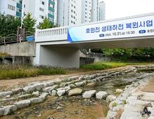 어웨이크뉴스 오경하 기자 | 의정부시는 10월 31일 호원천 내 생태교육장에서 ‘호원천 생태하천 복원사업 준공식’을 개최했다. 이번 사업은 건천화됐던 호원천을 맑은 물이 흐르는 생태하천으로 복원하기 위해 추진됐으며, 도비 68억 원과 시비 68억 원 등 총 136억 원이 투입됐다. 시는 2020년부터 올해까지 6년에 걸쳐 ▲생태수로 복원 ▲하수관로 정비 ▲유지용수 공급관로 설치 ▲생태계 교란종 제거 ▲하천변 생태탐방로 및 생태교육장 조성 등 시민이 직접 체감할 수 있는 생태‧휴식공간을 조성했다. 이번 복원사업을 통해 호원천은 도심 속 생명이 살아 숨 쉬는 하천으로 탈바꿈했으며, 물순환 기능이 회복되고 주민들이 산책과 휴식을 즐길 수 있는 친수공간으로 거듭났다. 김동근 시장은 “호원천은 오랜 세월 시민 곁에 있었지만 다가가기 어려운 하천이었다”며 “이제는 시민 모두가 걸으며 쉬고 즐길 수 있는 공간으로 되살아나 매우 뜻깊다. 앞으로도 ‘시민의 삶을 바꾸는 도시’를 만들기 위해 최선을 다하겠다”고 말했다. 한편, 시는 준공 이후에도 수질 관리와 생태계 모니터링, 유지관리 활동을 지속해 시민