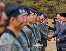 어웨이크뉴스 오경하 기자 | 이재명 대통령과 국빈 방한한 프라보워 수비안토 인도네시아 대통령은 오늘 오후 청와대 녹지원에서 육군 태권도 시범대 공연을 관람했다. 녹지원은 조선시대 당시 활쏘기 등 무과 시험과 군사 조련이 행해졌던 곳으로, 이재명 대통령이 청와대에 복귀한 이후 이곳에서 야외행사가 열린 것은 이번이 처음이다. 육군 태권도 시범대는 우리 군 최초로 태권도 시범을 전담하는 부대로, 올해 1월 창설됐다. 강인한 정신력과 뛰어난 기량을 바탕으로 대한민국 군의 위상과 태권도의 기백을 세계에 알리고 있다. 특히 오늘 공연은 육군 태권도 시범대 창설 이후 처음으로 외국 정상 앞에서 선보이는 시연으로 그 의미를 더했다. 청와대는 프라보워 대통령이 군 출신으로 무예에 깊은 관심을 갖고 있는 점을 고려해 육군 태권도 시범대 공연을 준비했다. 시범대는 첫 번째 공연으로 연꽃 창작품새와 격파를 선보였다. 연꽃을 형상화한 동작으로 시작된 창작품새는 어떠한 환경에서도 흔들림 없이 임무를 수행하는 군인 정신과 태권도의 절제된 아름다움을 표현했다. 이어진 격파 시연에서는 단련된 기술과 우리 군의 강인함