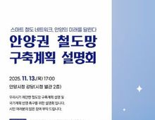 어웨이크뉴스 오경하 기자 | 안양시가 오는 13일 17시 시청 강당에서 ‘안양권 철도망 구축계획 설명회’를 개최하고 미래교통 중심도시·교통혁신도시 도약에 본격적으로 나선다고 6일 밝혔다. 시는 이번 설명회에서 ‘스마트 철도 네트워크, 안양의 미래를 달린다’를 슬로건으로 ▲위례과천선·서울서부선 안양권 연장 ▲경부선 철도 안양 구간(석수~명학) 지하화 ▲KTX-이음 안양역 추가 정차 등 주요 철도사업 계획을 시민 및 전문가와 공유하고 의견을 수렴한다. 아울러, 철도망 구축에 대한 지역사회의 공감대를 형성하고, 국토교통부 상위계획 반영을 적극 건의할 계획이다. 안양시는 현재 지하철 1·4호선이 도심축을 연결하고 있으며, GTX-C, 월곶~판교선, 인덕원~동탄선, 신안산선까지 더해지면 총 6개 노선이 지나는 경기도 서남부권 제일의 철도 거점도시로 거듭나게 된다. 여기에 더해, 지난 2023년 3월부터 준비한 안양권 철도망 구축계획 수립 및 경부선 철도 지하화·상부 개발 전략 수립 용역을 추진하고 철도 인프라 확충을 통한 도시 경쟁력 강화 방안을 마련해왔다. 위례과천선·서울서부선 안양권 연장은 고속철도의 이용편의를 제공하고 관악산을 우회하는 교통불편을 해소하는 사업이