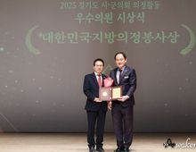 어웨이크뉴스 오경하 기자 | 의정부시의회 김연균 의장이 24일 대한민국시군자치구의회의장협의회가 수여하는 ‘대한민국지방의정봉사상’을 수상했다. ‘대한민국지방의정봉사상’은 투철한 사명감과 헌신적인 봉사정신으로 지방의정 발전과 주민 복리 증진에 기여한 의원에게 수여되는 상이다. 김 의장은 제9대 의정부시의회 의장으로 재임하며 주요 현안에 대한 면밀한 점검과 합리적인 논의를 통해 시정 운영의 투명성과 신뢰성을 높이는 데 기여해 왔다. 아울러 현장 중심의 의정활동을 통해 시민의 목소리를 적극적으로 의정에 반영해 왔다. 특히 지역 민원 현장을 직접 찾아 지역 주민과 소통하며, 주민 눈높이에 맞는 의정활동을 지속해 왔다는 평가를 받고 있다. 또한 경기도시·군의회의장협의회 대변인으로 활동하며 도내 31개 시·군의회 간 소통과 협력을 이끌고, 도민의 목소리를 대변하는 가교 역할을 수행하고 있다. 김연균 의장은 “앞으로도 현장에서 답을 찾는 의정활동으로 시민의 불편을 줄이고 지역 발전에 최선을 다하겠다”고 밝혔다.