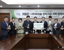 어웨이크뉴스 오경하 기자 | 가평군은 ㈜우리술과 지역 인재양성을 위한 장학기금 기탁 재협약을 20일 체결했다고 밝혔다. 가평군청 소회의실에서 개최된 이날 협약식에는 서태원 가평군수, 박성기 ㈜우리술 대표 등 10명의 관계자가 참석했다. 가평군과 ㈜우리술의 장학기금 기탁 협약은 지난 2017년 2월 첫 협약을 맺은 이후 매년 계약을 연장해 왔다. 협약에 따라 ㈜우리술은 ‘가평잣生(생)막걸리’의 가평지역 판매량에 따라 병당 일정 금액을 적립해 반기별로 가평군에 장학기금으로 기탁하게 된다. 가평군도 ㈜우리술 ‘가평잣生막걸리’ 판매 증대를 위해 적극 협조하기로 했다. 이번 협약 기간은 2026년 9월 말까지이며, 지금까지 ㈜우리술이 가평군에 기탁한 금액은 총 1억100여만원에 달한다. 서태원 군수는 “㈜우리술과의 재협약 체결로 지역인재 양성을 위한 든든한 기반을 다질 수 있게 됐다”며 “가평지역 인재양성에 힘써 주시는 박성기 대표께 감사드리며, 더 많은 학생들의 학업을 지원할 수 있도록 장학기금을 내실있게 운용해 나가겠다”고 말했다.