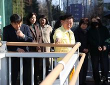어웨이크뉴스 오경하 기자 | 박승원 광명시장이 시민 안전을 지키고 생활 속 불편을 해소하기 위한 현장 중심 행정을 이어가고 있다. 박 시장은 13일 오후 ‘제71회 생생소통현장’ 일정으로 주요 기반시설과 민원 현장을 차례로 방문해 시설 안전 상태를 점검하고 주민들의 의견을 청취했다. 이번 현장 방문은 공사가 완료된 시설물의 안전 상태를 확인하고, 노후 시설물 대응 상황을 점검하는 동시에 주민 민원을 직접 살피기 위해 마련됐다. 첫 일정으로 박 시장은 보수·보강공사를 마친 철산동 햇무리육교를 찾았다. 공사 마무리 상태와 보행 안전성을 점검하며, 시민들이 안전하고 편리하게 이용할 수 있도록 지속적인 관리에 힘써 줄 것을 관계 부서에 주문했다. 이어 일직동 충훈대교를 방문해 차량 통행 제한 현장을 점검했다. 해당 구간은 보강토 옹벽 일부 구간에서 배부름과 침하가 발생해 정밀안전진단 결과 디(D)등급 판정을 받았으며, 현재 2차선 차량 통행이 제한된 상태다. 박 시장은 “시민 안전을 최우선에 두고 신속하고 철저한 보강 대책을 마련해야 한다”며 “공사 추진 과정에서도 안전 관리에 만전을 기해 차