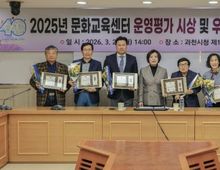 어웨이크뉴스 오경하 기자 | 과천시는 지난 23일 시청 제1회의실에서 7개 동 주민문화교육센터 운영평가 결과 우수 센터를 시상하고, 각 동 주민자치위원회 우수 사례를 공유하는 자리를 마련했다. 이번 시상에서는 과천동이 대상을 수상했다. 과천동 문화교육센터는 문화교육센터 운영 활성화와 주민자치위원회 운영 내실화 및 활성화 분야에서 모두 1위를 기록했다. 특히 2025년 처음 개최한 ‘남태령옛길 여우고개 축제’를 통해 지역 역사 자원을 축제 콘텐츠로 재해석하며 큰 호응을 받았고, 제주특별자치도 대륜동과 충남 예산군 신암면과의 도농 교류 사업도 추진했다. 최우수상은 과천시 공모 사업으로 ‘꼬꼬무 SLOW 모두의 운동회’를 운영한 문원동에, 우수상은 어린이 중심 문화 행사인 ‘2025년 부림동 어린이와 함께하는 키즈 클래식’을 추진한 부림동에 돌아갔다. 장려상은 ‘내점길 및 교동길 자전거 안전 통행 캠페인’을 추진한 중앙동, 주민이 참여형 행사인 ‘원문동 한마음 축제’를 개최한 원문동, 주민 화합을 위한 ‘열정축제’를 운영한 갈현동, 자원순환 실천을 주제로 한 ‘모모순(모아모아 자원순환) 페스티벌’을 추진한 별양동이