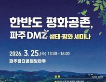 어웨이크뉴스 오경하 기자 | 파주시는 오는 25일 13시부터 16시까지 파주장단콩웰빙마루(탄현면 필승로 396) 2층에서 ‘한반도 평화공존, 파주 디엠지(DMZ) 생태·평화 세미나’를 개최한다. 이번 토론회(세미나)는 정부 국정과제로 제시된 ‘국제 생태·평화·관광 협력지구 개발, 평화경제특구 조성’과 ‘한반도 생물다양성 회복’정책에 선제적으로 대응하고, 파주 디엠지(DMZ)의 평화적 이용과 체계적 보전 방안을 모색하기 위해 마련됐다. 행사에는 강금실 외교부 글로벌기후환경대사, 김경일 파주시장, 박정 국회의원, 박대성 파주시의회 의장을 비롯해 생태·환경·평화 분야 전문가, 시민 등 150여 명이 참석할 예정이다. 1부 개회식에 이은 2부 발표회에서는 ▲강민조 국토연구원 한반도·동아시아연구센터장의 ‘디엠지(DMZ)의 보전 및 평화적 이용방안’▲서형수 국립생태원 생태조사연구실 전임연구원의 ‘생물다양성 보전을 위한 디엠지(DMZ) 일원의 생태적 중요성과 보전 방향’▲조성택 경기연구원 경기북부특별자치도연구센터장의 ‘경기북부 접경지역의 발전방향’을 주제로 발표가 진행된다. 3부 전문가 토론에서는 이상준 한미글