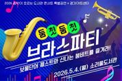 어웨이크뉴스 오경하 기자 | 오산시 소리울도서관은 제104회 어린이날을 앞둔 오는 5월 4일 경기아트센터와 협업해 ‘2026 음악이 흐르는 도서관 콘서트’ 특별공연인 ‘둠칫둠칫 브라스 파티’를 개최한다고 밝혔다. 이번 행사는 소리울도서관이 경기아트센터의 ‘2026 경기도 어린이 축제 지원사업’에 선정되면서 마련된 특별 프로그램이다. 어린이날을 맞아 어린이와 시민들에게 수준 높은 문화예술 향유 기회를 제공하고, 도서관을 즐거운 복합문화공간으로 알리기 위해 기획됐다. 행사는 브라스 밴드 공연과 도서 대출을 연계한 참여형 이벤트로 다채롭게 진행된다. 먼저 오후 2시부터 1층 자료실에서는 ‘보물 단어 퀘스트’ 미션이 열린다. 꿈, 희망, 가족, 선물, 친구, 비밀, 소리 등 ‘오늘의 7대 보물 단어’가 제목에 포함된 도서 5권을 대출하면 미션이 완료된다. 미션 성공자 선착순 25명에게는 ‘시크 블랙 독서 북커버’가 제공되며, 이후 참여자들에게도 키링과 책갈피 등 다양한 기념품이 증정될 예정이다. 이어 오후 3시부터는 소리울아트리움에서 6인조 ‘붐비트 브라스밴드’의 공연이 펼쳐진다. K-POP 히트곡 ‘AP