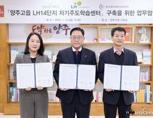 어웨이크뉴스 오경하 기자 | 양주시는 12일 시청 시장실에서 한국토지주택공사 경기북부지역본부, 동두천양주교육지원청과 함께 ‘양주고읍 LH14단지 자기주도학습센터’ 구축 및 운영을 위한 업무협약을 체결했다. 이번 협약은 교육부 국가시책인 사교육 부담 완화 정책의 일환으로, 아파트 단지 내 유휴 어린이집 공간을 활용해 학생에게는 공공형 학습공간을, 주민에게는 일상 속 문화·커뮤니티 공간을 제공하는 차별화된 상생형 교육 모델이라는 점에서 의미가 크다. 시는 LH 경기북부지역본부와의 협력을 바탕으로 사업 추진 과정에서 주민설명회 개최와 입주민 투표를 통해 충분한 의견 수렴과 주민 동의를 이끌어내는 소통 행정을 추진했다. 그 결과, 낮 시간에는 주민 커뮤니티 공간으로, 방과 후에는 학생들의 자기주도학습 공간으로 운영되는 지역 상생형 교육 인프라가 구축되며 주거와 교육이 결합된 새로운 공공교육 모델이 실현됐다. 시 관계자는 “차별화된 공공형 자기주도학습센터 모델을 구축할 수 있도록 공간 제공에 협력해 준 LH 경기북부지역본부에 깊이 감사드린다”며, “앞으로도 동두천양주교육지원청과 긴밀히 협력해 사교육 걱정 없