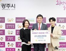 어웨이크뉴스 오경하 기자 | 광주시 홍보대사 마커스강(본명 강원휘)은 10일 광주시청을 방문해 지역 내 어려운 이웃을 돕기 위한 성금 500만 원을 기탁했다. 이번 기탁은 마커스강이 광주시에 대한 감사의 뜻과 경기도종합체육대회의 성공 개최를 기원하며 마련한 것으로, 지난 3월 17일 열린 경기도 장애인체육대회 성공 개최 기원 기념 공연 출연료 전액을 기부한 것이다. 특히, 최근 경제적 어려움이 지속되는 상황에서 취약계층에 대한 지원과 나눔 확산에 이바지하기 위한 취지로 추진됐다. 마커스강은 “작은 정성이지만 어려운 이웃들에게 조금이나마 도움이 되길 바라는 마음으로 기탁하게 됐다”며 “앞으로도 지속적인 나눔을 이어가겠다”고 말했다. 이에 대해 방세환 시장은 “지역사회를 위한 따뜻한 나눔에 깊이 감사드린다”며 “기탁받은 성금은 꼭 필요한 분들에게 소중히 전달하겠다”고 밝혔다. 한편, 시는 이번에 기탁된 성금을 지역 내 취약계층 지원을 위해 사용할 계획이다.