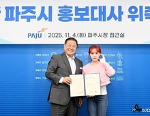 어웨이크뉴스 오경하 기자 | 파주시는 11월 4일, 가수 김다현을 파주시 홍보대사로 추가 위촉했다고 밝혔다. 이번 위촉식은 김경일 파주시장과 김다현 씨의 가족들이 참석한 가운데 진행됐다. 김다현 씨는 앞으로 2년간 파주시의 주요 정책과 문화·관광을 홍보하고, 지역 행사 등에 적극 참여할 예정이다. 현재 한국과 일본을 오가며 활약 중인 김다현 씨는 ‘청학동 훈장’으로 알려진 김봉곤 훈장의 막내딸로, 2019년 곡 ‘꽃처녀’로 데뷔한 트로트 가수이자 국악인이다. 이후 엠비엔(MBN) 경연 프로그램 ‘보이스트롯’준우승, 티브이(TV)조선 ‘내일은 미스트롯2’3위, 엠비엔(MBN) ‘현역가왕’3위 등을 차지하며, 다양한 무대를 통해 국악적 깊이와 대중성을 함께 갖춘 가창력으로 주목받고 있다. 김경일 파주시장은 “트로트 요정 김다현 씨가 파주시의 젊고 활기찬 이미지를 알리는 데 큰 힘이 될 것으로 기대한다”라고 말했다. 앞서 파주시는 지난 17일 밴드 ‘두 번째 달’, 유튜브 창작자 ‘젼언니’, 가수 ‘김설’을 홍보대사로 위촉한 바 있다. 이번 김다현 씨의 합류로 파주시 홍보대사단은 한층 풍성해져, 음악·문