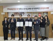 어웨이크뉴스 오경하 기자 | 동두천양주교육지원청과 양주시청은 1월 21일, '지역교육협력을 위한 양주시-경기도교육청 경기공유학교 업무 협약'을 체결했다. 이번 업무 협약을 통해 동두천양주교육지원청과 양주시는 학생 개개인의 특성과 요구에 맞는 맞춤형 교육 실현을 위해 존중과 신뢰를 바탕으로 한 지역교육협력 네트워크를 확대하는 등 상호 협력 체계를 더욱 강화할 예정이다. 협약의 주요 내용은 ▲교육지원사업 ▲경기공유학교 운영 두 가지 분야로 구성된다. 교육지원사업 분야에서는 양주 지역 특성을 반영한 학교 맞춤형 교육 프로그램을 공동 발굴하고, 자문·기획·질 관리 등 전 과정에서 협력한다. 또한 지역교육협력을 위한 교육공동체의 역량 강화에 대한 협력도 지속할 예정이다. 경기공유학교 분야에서는 학생 맞춤 성장을 지원하는 지역교육 플랫폼으로서, 지역교육협력 네트워크 기반의 파트너십 구축에 힘쓴다. 아울러 양주시 산하기관 및 재단 등 지역 교육자원을 경기공유학교와 연계하여 학생들이 보다 풍부하고 다양한 교육 경험을 누릴 수 있도록 협력한다. 임정모 교육장은“이번 협약은 지역과 교육이 함께 성장하는