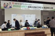 어웨이크뉴스 오경하 기자 | 군포산업진흥원은 지난 6일 컨벤션홀에서 군포시 산본보건지소의 '찾아가는 심폐소생술 교육'과 연계해 임직원을 대상으로 심폐소생술(CPR) 및 응급처치 교육을 실시했다. 이번 교육은 심폐소생술(CPR) 이론 및 실습을 비롯해 자동심장충격기(AED) 사용법, 응급처치 요령 등 실제 상황을 가정한 체험 중심 프로그램으로 진행됐다. 특히 2026년부터 체육시설 운영에 따라 다양한 연령층의 이용객이 증가하여 임직원의 응급상황 대응 역량을 강화하고 안전한 시설 환경을 조성하고자 이번 교육을 마련했다. 이번 상반기 교육은 임직원을 대상으로 우선 실시했으며 하반기에는 입주기업 및 체육시설 이용객 등으로 참여 대상을 확대해 운영할 계획이다. 유병직 원장은 "지역 보건소와의 협업을 통해 보다 전문적이고 체계적인 교육을 제공할 수 있었다"며 “앞으로도 실효성 있는 안전교육을 지속 확대해 안전한 근무환경과 이용환경 조성에 힘쓰겠다"고 밝혔다.