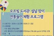 어웨이크뉴스 오경하 기자 | 동두천시 도서문화사업소는 설날을 맞아 오르빛도서관에서 유아를 동반한 가족과 저연령 청소년을 대상으로 ‘설날 맞이 전통놀이 체험 프로그램’을 2월 4일 운영한다. 프로그램 참여 신청은 동두천시 도서관 홈페이지를 통해 선착순으로 접수하며, 신청 기간은 1월 22일부터 2월 1일까지다. 이번 프로그램은 가족이 함께 참여하며 세대 간 소통의 폭을 넓히고, 설 명절의 의미와 전통문화를 자연스럽게 체험할 수 있도록 기획됐다. 설날 관련 그림책 자유독서를 비롯해 만들기 키트를 활용한 윷놀이와 통통놀이 제작 및 게임 체험, 전통놀이 선생님과 함께하는 투호 등 체험 중심의 다채로운 프로그램으로 운영될 예정이다. 동두천시 도서문화사업소장은 “민족 최대의 명절인 설날을 맞아 어린이와 청소년이 전통문화를 놀이로 즐길 수 있도록 프로그램을 마련했다”라며 “가족이 함께 참여해 뜻깊은 명절 추억을 만들길 기대한다”라고 말했다. 프로그램과 관련한 자세한 사항은 동두천시 도서관 홈페이지에서 확인할 수 있다.