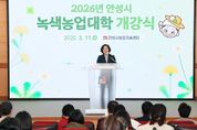 어웨이크뉴스 오경하 기자 | 안성시는 지난 11일 안성시농업기술센터에서 ‘제23기 안성시녹색농업대학’ 개강식을 열고 본격적인 교육에 들어갔다고 밝혔다. 이날 행사에는 신입생과 동문 회원 등 80여 명이 참석해 새로운 출발을 다짐했으며, 개강식 이후에는 학과별 전문가 특강을 진행해 교육생들의 큰 호응을 얻었다. 올해 제23기 과정은 ▲농창업학과 ▲스마트 귀농귀촌학과 ▲지역농산물 개발학과 등 3개 학과로 운영된다. 최종 선발된 63명의 입학생은 오는 8월까지 약 6개월간 총 20회(90시간)에 걸쳐 체계적인 전문 교육을 받게 된다. 시 관계자는 “녹색농업대학의 힘찬 출발을 진심으로 축하하며, 이번 교육을 통해 현장 실무 능력을 갖춘 전문 농업인으로 거듭나길 기대한다”고 전했다. 한편 안성시녹색농업대학은 2025년 농촌진흥청 전국 농업인대학 운영평가 ‘대상(1위)’에 이어, 2026년 경기도 농업인대학 운영평가에서도 ‘최우수상(1위)’을 휩쓰는 등 전국 최고 수준의 전문농업인력 양성 기관으로 인정받고 있다.