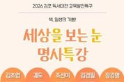 어웨이크뉴스 오경하 기자 | 김포시 도서관은 2026 김포 독서대전 교육발전특구 사업으로 '세상을 보는 눈, 명사특강'을 오는 5월 17일부터 10월 18일까지 5회에 걸쳐 관내 도서관 3곳에서 진행한다. 이번 명사특강은 문학·과학·교육·경제 각 분야의 저명한 저자를 초청해 세상을 바라보는 시야를 넓히는 인문 강연으로, 함께 배우며 공감하는 새로운 독서의 가치를 공유하고자 기획됐다. 강연은 ▲5월 17일 오후 2시, 마산도서관에서 소설가 김초엽의 ‘공상과학(SF), 다른 세계를 감각하는 법’ ▲6월 21일 오후 2시, 모담도서관에서 과학 콘텐츠 인플루언서 궤도의 ‘과학의 거대한 궤도’ ▲7월 19일 오후 2시, 장기도서관에서 아동심리 전문가 조선미의 ‘성장을 위한 좌절 내구력 키우기’ ▲8월 23일 오후 2시, 모담도서관에서 경제 전문가 김경필의 ‘돈쭐나는 경제 잔소리’ ▲10월 18일 오후 2시, 장기도서관에서 소설가 장강명의 ‘소설가가 먼저 본 미래’로 진행된다. 강연별 모집 일정과 자세한 내용은 김포시 도서관 누리집에서 확인할 수 있으며, 김포시 통합예약 누리집에서 선착순으로 신청할 수 있다.