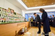 어웨이크뉴스 오경하 기자 | 이재명 대통령과 김혜경 여사가 1월 27일 서울 종로구 서울대병원 장례식장에 마련된 고 이해찬 전 총리 빈소를 찾아 영정을 향해 묵념하고 있다.