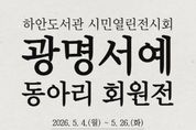 어웨이크뉴스 오경하 기자 | 광명시 하안도서관은 오는 5월 4일부터 28일까지 1층 시민열린전시코너에서 서예 동아리 ‘광명서예’ 회원전을 연다. 하안도서관을 거점으로 활동하는 시니어 동아리 ‘광명서예’는 매주 수요일 정기 모임으로 기량을 닦아왔다. 올해 2회째인 이번 전시에서 그간 쌓은 창작 결실을 지역사회와 공유한다. 특히 ‘광명서예’는 문화체육관광부 주관 ‘2026년 도서관 문화예술 동아리 지원’ 공모 사업에 선정됐다. 확보한 국비 300만 원으로 전문 강사 특강을 진행해 작품 예술 완성도를 한층 높였다. 전시 작품은 ▲효과승사(유방선 시) ▲불역쾌재행(정약용 시) ▲춘우(허초희 시) ▲다반향초(김정희 시)를 비롯해 명심보감 구절과 자경문 등 총 28점이다. 모두 족자 형태로 구성했다. 관람은 공휴일과 도서관 정기 휴관일(매주 금요일)을 제외하고 평일과 주말 오전 9시부터 오후 9시까지 할 수 있다. 시민 누구나 무료로 감상한다. 최혜민 광명시장 권한대행(부시장)은 “동아리 회원 노력이 담긴 이번 전시는 시민이 주체가 되어 만드는 문화예술 활동 모범 사례”라며 “앞으로도 도서관을 중