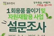 어웨이크뉴스 오경하 기자 | 동두천시는 깨끗한 도시환경 조성을 위해 추진 중인 '1회용품 줄이기 및 자원 재활용 사업'의 기초자료로 활용하고자 시민 설문을 실시한다. 이번 설문은 동두천시민이면 누구나 참여할 수 있도록 개인정보 수집, 회원 등록, 로그인 등 별도 절차를 생략하고, 링크 또는 QR코드를 통해 바로 참여할 수 있게 구성했다. 참여 방법은 네이버 설문 링크 링크, 또는 QR코드를 이용하면 되며, 설문은 총 10개 문항으로 이뤄져 있다. 시 관계자는 “10대부터 어르신까지 다양한 시민의 의견을 폭넓게 듣기 위해 시 SNS와 관련 단체를 통해 설문 링크를 공유하고 있다”라며 “설문을 안내받은 시민들도 가족과 지인에게 공유해 참여를 독려해 달라”라고 밝혔다. 박형덕 동두천시장은 “이번 설문 참여와 함께 가정·직장·학교 등 일상에서 1회용품 사용을 줄이고 자원을 재활용하는 실천에 동참해 주시길 바란다”라며 “시는 설문 결과를 바탕으로 관련 사업을 적극 추진하겠다”라고 말했다.