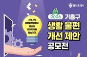 어웨이크뉴스 오경하 기자 | 용인특례시 기흥구는 오는 6일부터 5월 4일까지 ‘2026 기흥구 생활불편개선 제안 공모전’을 개최한다. 이번 공모전은 일상에서 시민이 직접 체감하는 불편사항을 발굴하고, 이를 개선할 수 있는 다양한 방안을 모색하고자 마련됐다. 주제는 일상생활에서 체감하는 생활 불편 개선 아이디어다. 시설·환경 등 각종 생활 불편 사항이나 비효율적인 행정이나 규제 등 다양한 분야의 의견을 받는다. 생활 불편에 관심 있는 누구나 참여할 수 있다. 시 누리집 ‘용인소식’의 ‘고시공고’ 또는 기흥구 누리집 ‘참여광장’의 ‘기흥소식’에서 서식을 내려받아 작성하면 된다. 작성한 제안은 방문‧우편(기흥구 관곡로 95 기흥구청 별관 2층 자치행정과 기획감사팀)으로 내면 된다. 전자우편으로도 제출할 수 있다. 부서 검토와 제안공모심사위원회 검토를 거쳐 최종 선정된 제안은 시상금(최대 100만 원)이 지급된다. 또 관련 부서 검토 등을 거쳐 행정에 반영하거나 실효성 있는 정책으로 이어질 수 있도록 추진할 방침이다. 자세한 사항은 시 또는 구 누리집에서