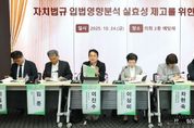 어웨이크뉴스 오경하 기자 | 경기도의회와 제주특별자치도의회는 10월 24일 금요일 오후 2시, 경기도의회 2층 예담채에서 '자치법규 입법영향분석 실효성 제고를 위한 토론회'를 공동 개최했다. 이번 토론회는 지방의회의 자치입법 역량을 강화하고, 자치법규의 실효성을 높이기 위한 목적으로 마련됐으며, 양 의회 사무처장, 국회입법조사처 및 지방의회 자치법규 관계자 등 50여 명이 참석하여 열띤 논의를 펼쳤다. 주제발표로는 아주대학교 공공정책대학원 이진수 박사가 자치법규 입법영향분석 평가기준 개선방안에 대해 발표했다. 이어 한국법제연구원 차현숙 혁신법제본부장이 제주의 입법평가 사례를 바탕으로 입법평가의 실효성 확보 방안을, 김준 전 국회입법조사처 실장이 법률 입법영향분석 기준에 대해 각각 발표를 이어갔다. 사례발표로는 경기도의회 김홍 입법조사관이 도의회 사후입법영향평가 현황과 과제를, 국회입법조사처 이동영 입법조사관이 국회입법조사처 입법영향분석 사례를 소개했다. 이후 경복대학교 복지행정학과 이상미 교수를 좌장으로 한 자치법규 입법영향분석 제도의 실효성을 높이기 위한 종합토론이 진행됐다. &nbs