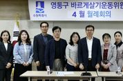 어웨이크뉴스 오경하 기자 | 수원시 영통구는 지난 24일 바르게살기운동 영통구지도위원회가 영통구청 상황실에서 각 동 위원장 및 총무 등 14명이 참석한 가운데 4월 월례회의를 개최했다고 밝혔다. 이날 회의에서는 ▲수원시 평생학습관 2분기 프로그램 수강생 모집 ▲상반기 찾아가는 우산수리센터 운영 ▲경기 기후보험 시행 ▲공영주차장 승용차 5부제 시행 등 주요 시·구정 정책을 공유했다. 또한, 전국동시지방선거를 앞두고 위원회의 선거기간 중 활동 제한사항을 안내하고, 6월 이후 각종 봉사 및 지역사회 활동이 재개됨에 따라 적극적인 참여를 독려했다. 장수석 영통구청장은 “지방선거 기간 동안 위원 여러분의 공정한 자세와 협조를 당부드린다”며, “특히 취약계층의 돌봄 활동과 이웃 안부 살피기에도 적극적으로 힘써주시길 바란다. 선거가 끝난 이후 다시 활발한 지역 봉사활동이 이어질 수 있기를 응원한다”고 말했다. 김명순 회장은 “최근 지역사회의 변화에 대응하기 위해 위원들의 적극적인 참여와 연대가 중요하다”며 “저를 포함한 모든 위원이 한마음으로 소통하며, 주민들의 불편을 해소하고 구정 발전에 기여할 수 있도록 함