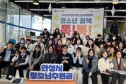 어웨이크뉴스 오경하 기자 | 안성시청소년수련관은 지난 12월 6일 ‘안성시청소년참여위원회’가 1년간 준비한 청소년 정책을 발표하는 ‘청소년 정책 톡!톡!’ 행사를 개최했다. 이날 행사에는 16명의 청소년참여위원회 위원을 비롯해 안성시장, 안성시 청소년 30여 명이 참석해 청소년이 직접 제안한 정책에 대해 논의하는 뜻깊은 시간을 가졌다. 청소년참여위원회는'청소년기본법' 제5조의2에 근거해 설치된 제도적 기구로, 청소년 정책 추진 과정에 청소년이 직접 참여하도록 마련된 장치다. 안성시는 매년 9~24세 청소년을 공개 선발해 청소년이 정책 수립 과정에 직접 참여할 수 있도록 지원하고 있다. 2025년 청소년참여위원회 위원들은 기존 청소년 정책 모니터링과 새로운 정책 제안을 위해 지역 축제·행사 등에 참여해 청소년 욕구 조사를 진행했으며, 매월 정기회의와 워크숍을 통해 안성시 청소년을 대표하는 정책을 마련하기 위해 노력해 왔다. 이번 행사에서는 ▲청소년 건강을 위한 학생 아침 간편식 모니터링 ▲청소년 진로 고민 해결을 위한 진로체험교육 모니터링을 통해 기존 정책의 현황과 개선 방안을 발표했다. 또한 신규