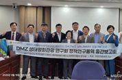 어웨이크뉴스 오경하 기자 | 경기도의회 의원연구단체인 DMZ생태평화관광 연구회는 지난 19일 경기도의회 도시환경위원회 회의실에서 '커먼즈 관점에서 본 DMZ와 배후지의 지속가능한 협력 거버넌스 모델 개발 연구' 용역 중간보고회를 개최했다. 이날 보고회에는 오준환 회장을 비롯해 윤종영 의원, 김호겸 의원, 서광범 의원, 윤태길 의원, 김옥순 의원, 방성환 의원, 김창식 의원, 이채명 의원 등이 참석해 성황을 이뤘다. 오준환 회장은 “연천군과 고양시에서 두 차례에 걸쳐 FGI를 진행해본 결과 주민들의 반응이 긍정적이었다”면서도, “더 많은 표본을 확보해 결과의 신뢰성을 높이는 방안이 필요하다”고 강조했다. 이어 오 회장은 “이번 연구가 고양·파주·김포·연천·포천 등 DMZ 배후지를 중심으로 지속가능한 공동자산 관리체계와 거버넌스 방향을 제시하는 의미 있는 성과로 이어지길 바란다”며, “지역사회 기반의 관광 개발을 통해 배후지 경제 활성화, 고용 창출, 그리고 지역경제의 다변화에 기여하는 계기가 되길 기대한다”고 밝혔다. 용역수행기관인 협동조합 자연과공생연구소 윤여창 이사장은 중간보고에서 “착수보고 이후