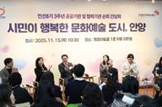 어웨이크뉴스 오경하 기자 | 안양시는 13일 오전 10시 30분 평촌아트홀 1층 카페 아트림에서 ‘시민이 행복한 문화예술 도시, 안양’을 주제로 (재)안양문화예술재단과 민선 8기 3주년 공공·협력기관 순회 간담회를 개최했다. 이번 간담회는 민선8기 3주년을 맞아 안양시 문화예술 정책의 주요 성과를 공유하고, 현장 예술인과 시민의 의견을 직접 청취하기 위해 마련됐다. 행사에는 안양 지역 예술인과 문화단체 관계자, 시민 등 120여 명이 참석해 안양의 문화예술 비전과 발전 방향에 대해 활발한 소통의 시간을 가졌다. 간담회에서는 ▲시민이 주인공이 되는 ‘안양춤축제’ ▲생활문화로 피어나는 ‘마을축제 지원사업’ ▲지역·청년예술인 창작활동 지원 ▲안양박물관과 공공예술프로젝트(APAP) 등 시민이 함께 만들어가는 다양한 문화예술 사례가 소개됐다. 안양춤축제는 안양만의 축제가 아니라 관광형 축제로 거듭나고 있다. 지난 9월 3일간 열린 축제에는 총 14만2,000여명이 참여했는데, 이 중 40%가 타 시도민으로 추산된다. 춤축제 기간 열린 유스클럽챔피언십의 한 고등학생 참가자는 “대회 분위기가 생각보다 훨씬 뜨거웠고 행복했다