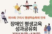 어웨이크뉴스 오경하 기자 | 구리시는 장애인 평생학습 도시 지정 3주년을 맞아, 장애인의 학습 성과를 공유하고 시민을 대상으로 장애 인식 개선을 위한 공감 프로그램을 제공하기 위해 오는 9월 26일(금)부터 28일(일)까지 구리한강시민공원에서'장애인 평생교육 성과공유회'를 개최한다고 밝혔다. 이번 행사는 '제19회 구리시 평생학습 축제'와 연계해 진행된다. 성과공유회에서는 장애인과 평생학습 관계자들이 한 해 동안 갈고닦은 학습 결과물을 시민들과 나누며 화합의 장을 마련한다. 구리시 관내 6개 장애인 기관·단체가 참여해 ▲발달장애인 미술 작품 전시 ▲슐런 체험(네덜란드 전통 보드게임, 나무 원판을 미끄러뜨려 점수를 내는 놀이) 및 점자 홍보 ▲까롬 경기(인도 전통 보드게임, 손가락으로 작은 원판을 튕겨 포켓에 넣는 놀이) 체험 ▲장애 인식 개선 캠페인 등을 운영할 예정이다. 아울러, 장애인 평생학습 도시 지정 3주년을 기념하고 장애인 인식 개선을 위해 발달장애인으로 구성된 관악밴드 '드림위드 앙상블'팀이 무대에 올라 아름다운 하모니를 선사한다. 구리시는 장애인의 평생학습 참여기회를 넓히고, 지역 기관과의 네트워크