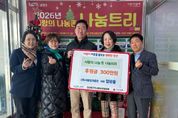 어웨이크뉴스 오경하 기자 | 남양주시는 9일 금곡동 소재 ㈜서울빙과총판이 진건읍 위기가구를 위한 후원금 300만 원을 전달했다고 밝혔다. 이번 후원은 진건읍 지역사회보장협의체가 연말연시를 맞아 운영 중인‘진건읍, 사랑의 나눔존 나눔트리’나눔 릴레이의 일환으로 추진됐다. 전달된 후원금은 경기사회복지공동모금회를 통해 진건읍 지역사회보장협의체로 지정 기탁되며, 2026년부터 위기가구 신속 응대 사업 ‘바로지원 꾸러미’에 활용된다. 이 사업은 위기 상황에 놓인 가구에 식료품 등 꾸러미를 신속하게 전달해 일시적인 위기를 완화하고 생활 안정을 도모하는 것을 목표로 한다. 엄관용 대표는 “지역사회와 함께 성장해 온 기업으로서 어려운 이웃에게 실질적인 도움을 되고자 후원을 했다”며 “이번 후원이 위기가구를 위한 신규 사업에 활용된다고 생각하니 더욱 뜻깊다”고 전했다. 김학철 진건퇴계원행정복지센터장은 “민간의 따뜻한 나눔이 위기가구를 신속히 지원하는 중요한 밑거름이 된다”며 “앞으로도 민관협력을 바탕으로 촘촘한 복지 안전망을 구축해 나가겠다”고 말했다. 박현정 진건읍 지역사회보장협의체 위원장은 “이웃을