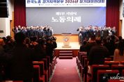 ▲경기도의회 김진경 의장, 2026년 정기대의원대회에서 축사하는 모습 어웨이크뉴스 오경하 기자 | 경기도의회 김진경(더민주·시흥3) 의장은 24일 열린 한국노총 경기지역본부(의장 김연풍) 2026년 정기대의원대회에서 노동자가 중심이 되는 노동의 지속가능성을 강조했다. 이날 수원 권선구에 위치한 한국노총 경기지역본부에서 열린 정기대의원대회에는 대의원 및 조합원들을 비롯해 경기도의회 경제노동위원회 고은정(더민주·고양10) 위원장과 김선영(더민주·비례)·이용호(국민의힘·비례) 부위원장, 건설교통위원회 허원(국민의힘·이천2) 위원장, 김동연 도지사 등이 참석한 가운데 열렸다. 김진경 의장은 축사를 통해 “2026년은 정년 연장 논의, AI를 중심으로 한 산업구조의 변화 등 노동의 미래를 다시 묻는 해가 될 것”이라며 “새로운 기술이 현장을 바꾸고, 일자리의 모습이 달라져도 그 변화의 중심에는 반드시 ‘사람’이 있어야 한다”라고 말했다. 이어 “노동의 지속가능성을 확보하는 것은 피할 수 없는 숙명이 되었다”라며 “이러한 과제들 앞에 한국노총이 현장의 목소리를 모으고, 사회적 해법을 이끌어주기를 기대한다”고 당부했다. 김 의장은 “노동자를 지키는 일은 곧 우리 사회를