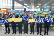 어웨이크뉴스 오경하 기자 | 이상일 용인특례시장이 14일 수도권과 중부권을 연결하고, 지역 간 교통 불균형을 해소할 수 있을 것으로 기대되는 중부권 광역급행철도(JTX) 조기착공을 위한 국토교통부, 한국개발연구원(KDI) 등 관계기관의 적극적인 관심과 지원을 촉구하고 나섰다. 이 시장은 이날 오후 청주국제공항 여객청사에서 열린 ‘중부권 광역급행철도(JTX) 조기착공 촉구 결의대회’에서 지난 8월 국토교통부가 한국개발연구원에 의뢰한 민자적격성 조사가 신속하게 통과돼 철도 신설을 위한 착공이 조기에 이뤄져야 한다고 강조했다. 이날 결의대회에는 ‘중부권 광역급행철도’ 노선이 지나는 용인특례시를 비롯해 ▲성남시 ▲광주시 ▲화성시 ▲안성시 ▲진천군 ▲청주시 등 7개 지방자치단체가 참여했다. 결의대회에 참여한 7개 도시는 공동건의문을 통해 수도권과 중부권을 연결하는 ‘중부권 광역급행철도(JTX)’는 지역간 교통 불균형을 해소하고, 수도권 과밀 문제를 완화하는 핵심 광역교통 인프라이자 국가의 주요사업 추진과 청주공항 접근성 개선을 통해 공항 활성화에 기여할 수 있다고 피력했다. 아울러 ‘경강선 연장’과 ‘수도권