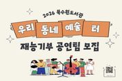 어웨이크뉴스 오경하 기자 | 북수원·대추골·일월도서관은 시민 참여 문화공연 ‘우리동네 예술 터’에 참여할 재능기부 공연팀을 4월 30일까지 모집한다. 모집 대상은 수원시 예술 동아리와 단체, 예술인으로 개인과 단체 모두 신청할 수 있다. 모집 분야는 ▲음악 ▲무용 ▲연극 등 다양한 장르의 공연이며, 지역 주민과 함께 나눌 수 있는 재능기부 형태의 공연이어야 한다. 정치적·종교적·영리 목적의 공연은 제외한다. 선정된 공연팀은 5월부터 12월까지 북수원·대추골·일월도서관 강당 등에서 공연할 수 있으며, 도서관은 공연 공간을 제공한다. 수원시 관계자는 “이번 사업은 이웃의 재능을 나누며 도서관을 소통의 공간으로 만드는 데 의미가 있다”며 “지역 예술인에게는 무대를, 시민에게는 문화 향유 기회를 제공하는 만큼 많은 참여를 바란다”고 말했다.